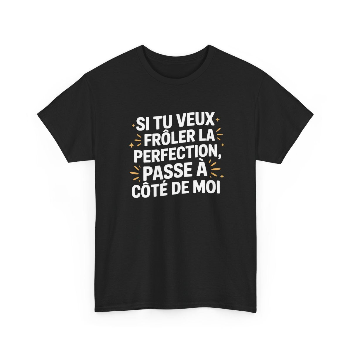 Tee-Shirt Humour Français Noir T Shirt Unisexe Citation Drôle Frôler la Perfection Coton Adulte S à 3XL