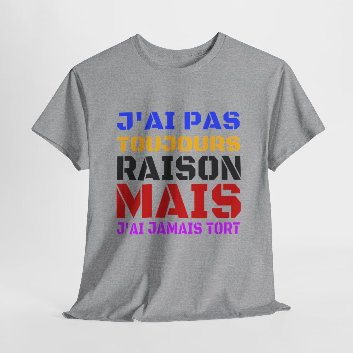 Tee Shirt Humour "J'ai pas toujours raison mais j'ai jamais tort" idée cadeau amusant Pour Homme et Femme
