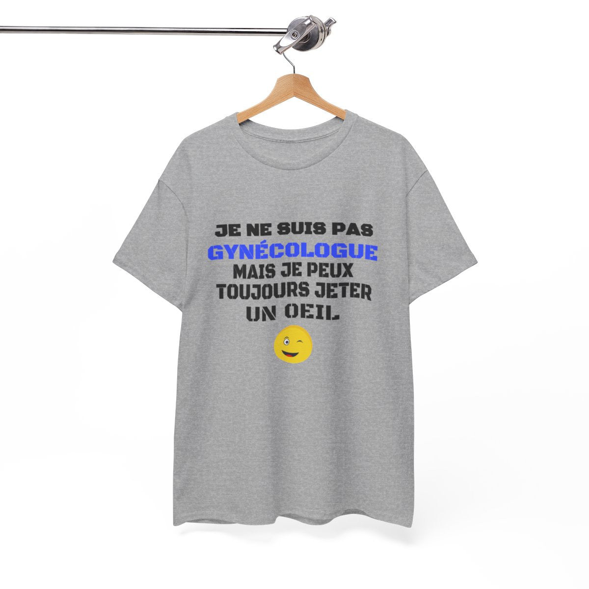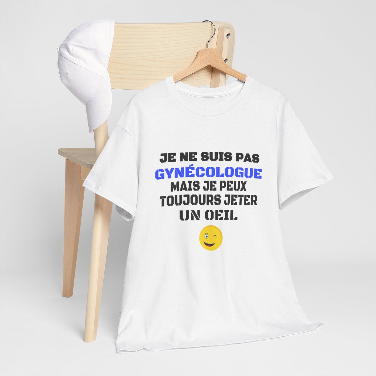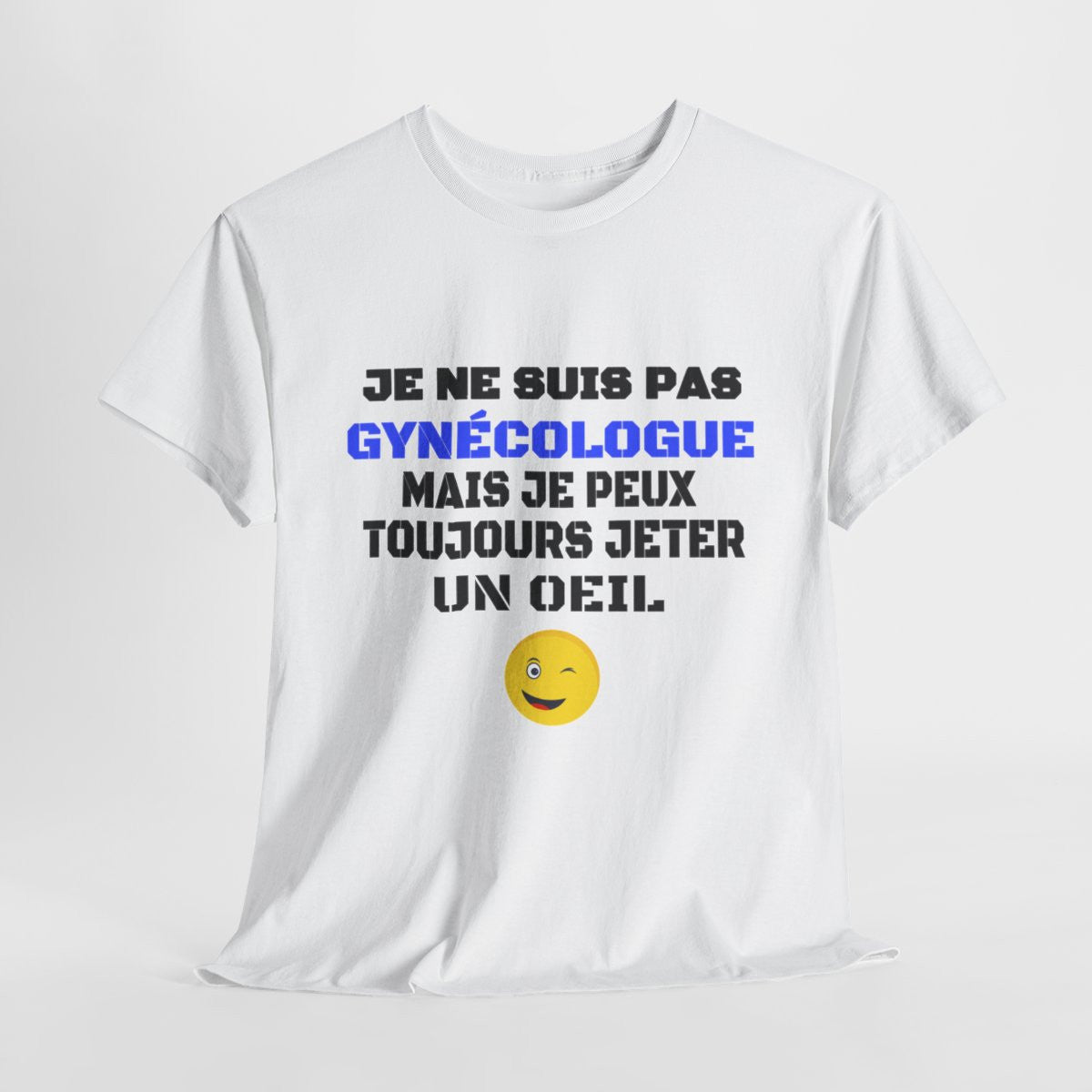 Tee Shirt Humour "Je ne suis pas gynécologue mais je peux toujours jeter un oeil" - Pour Homme
