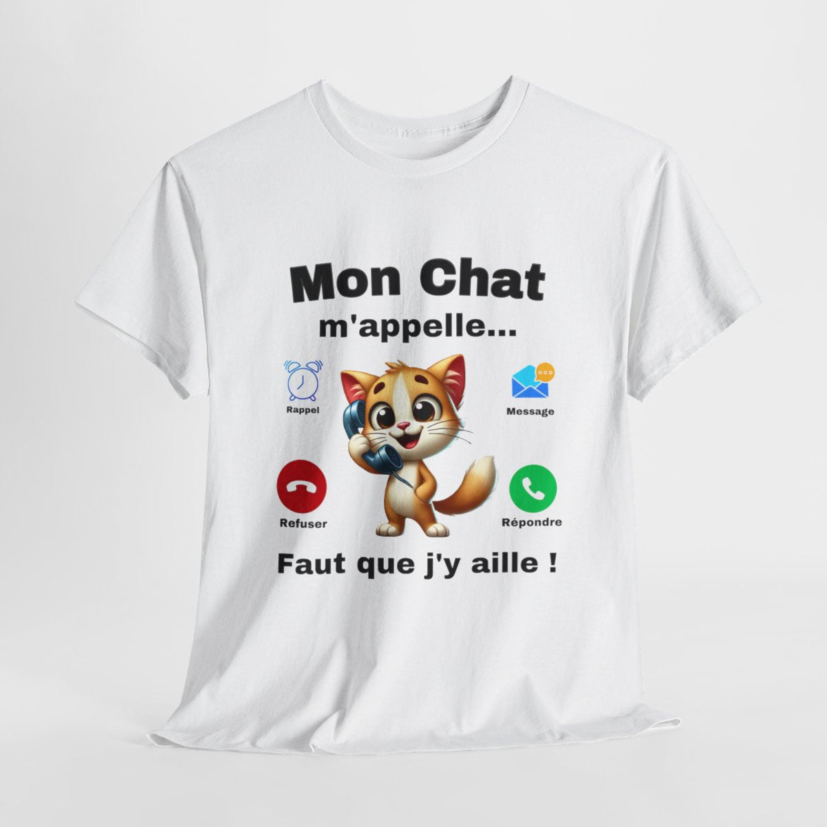 Tee Shirt Mon Chat M'appelle, Il Faut que J'y aille idée cadeau humour animal drôle pour homme et femme