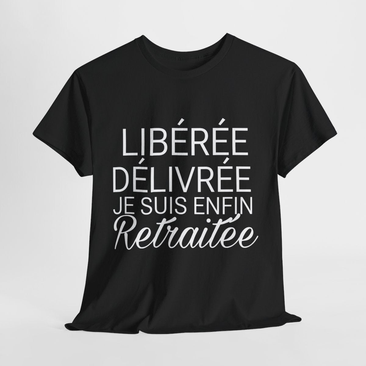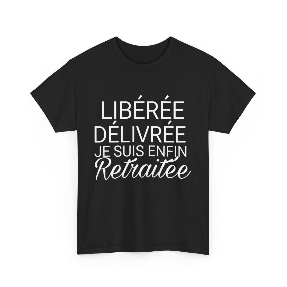 Tee shirt Noir Femme Libérée Délivrée Retraitée Idée cadeau humour drôle amusant