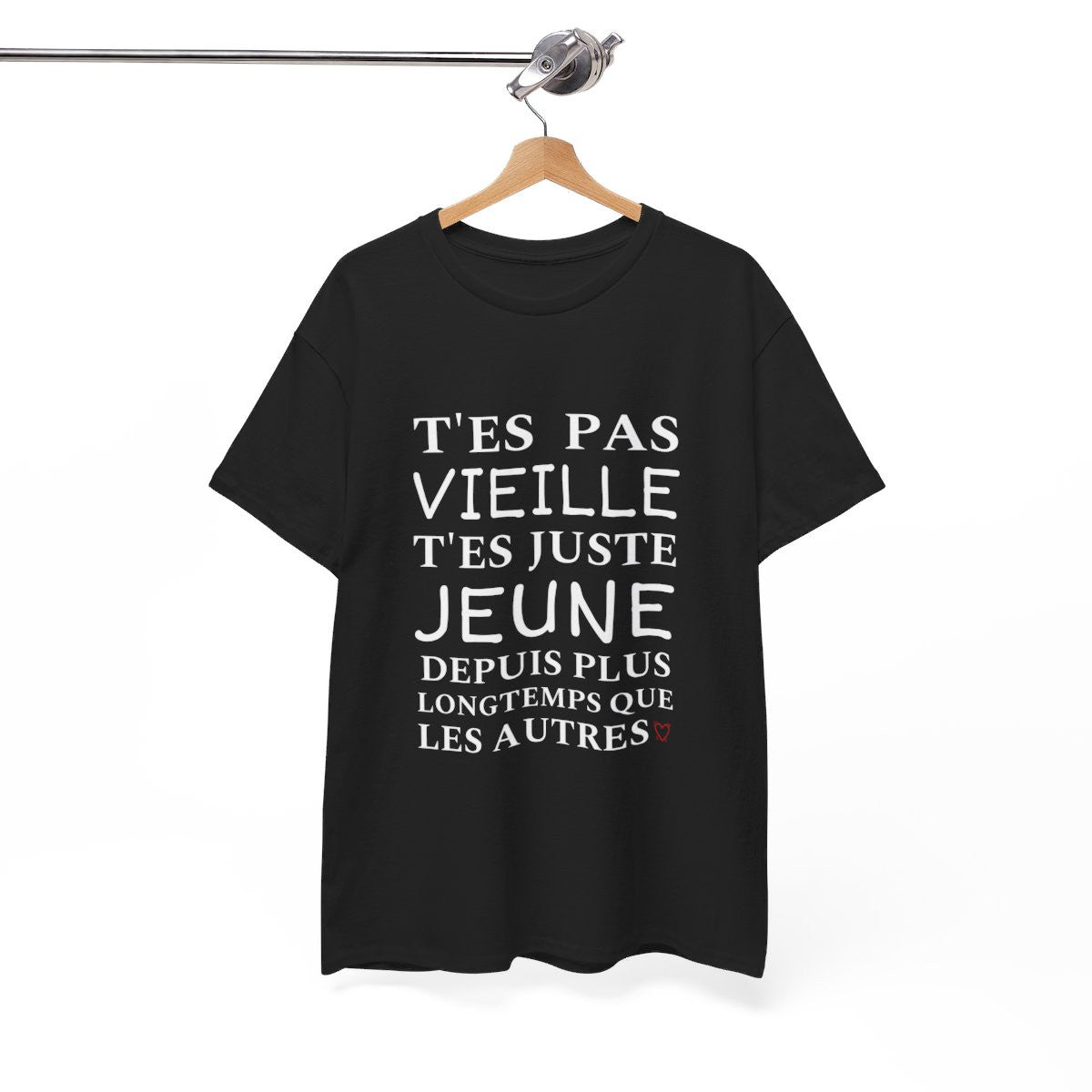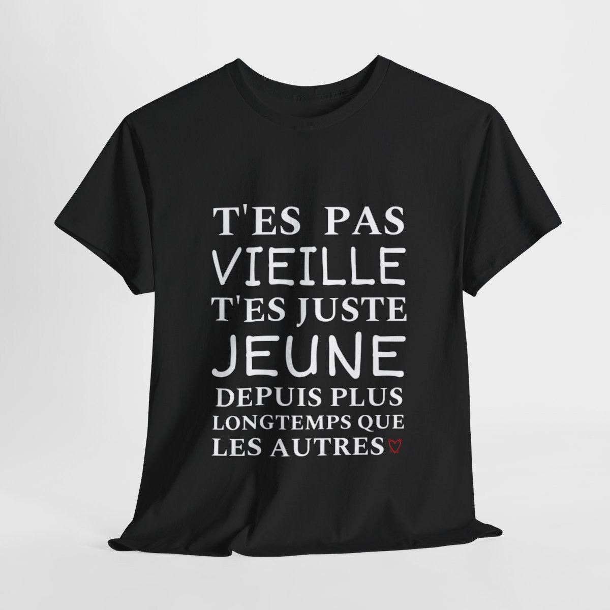 Tee shirt Noir  Femme T'es pas vieille idée cadeau humour drôle amusant