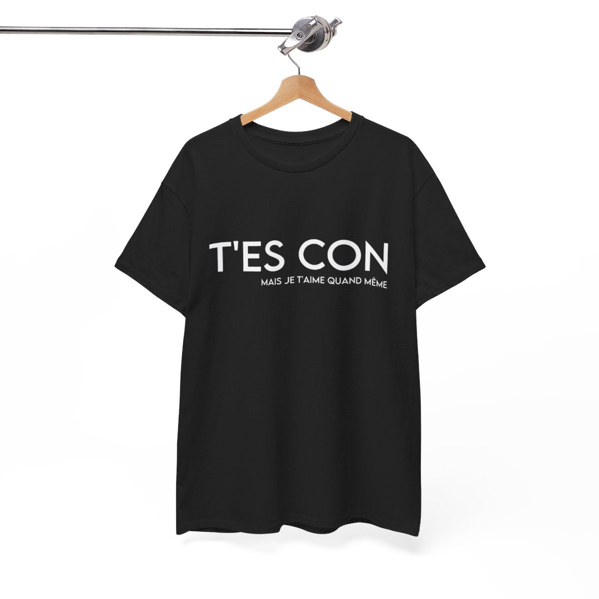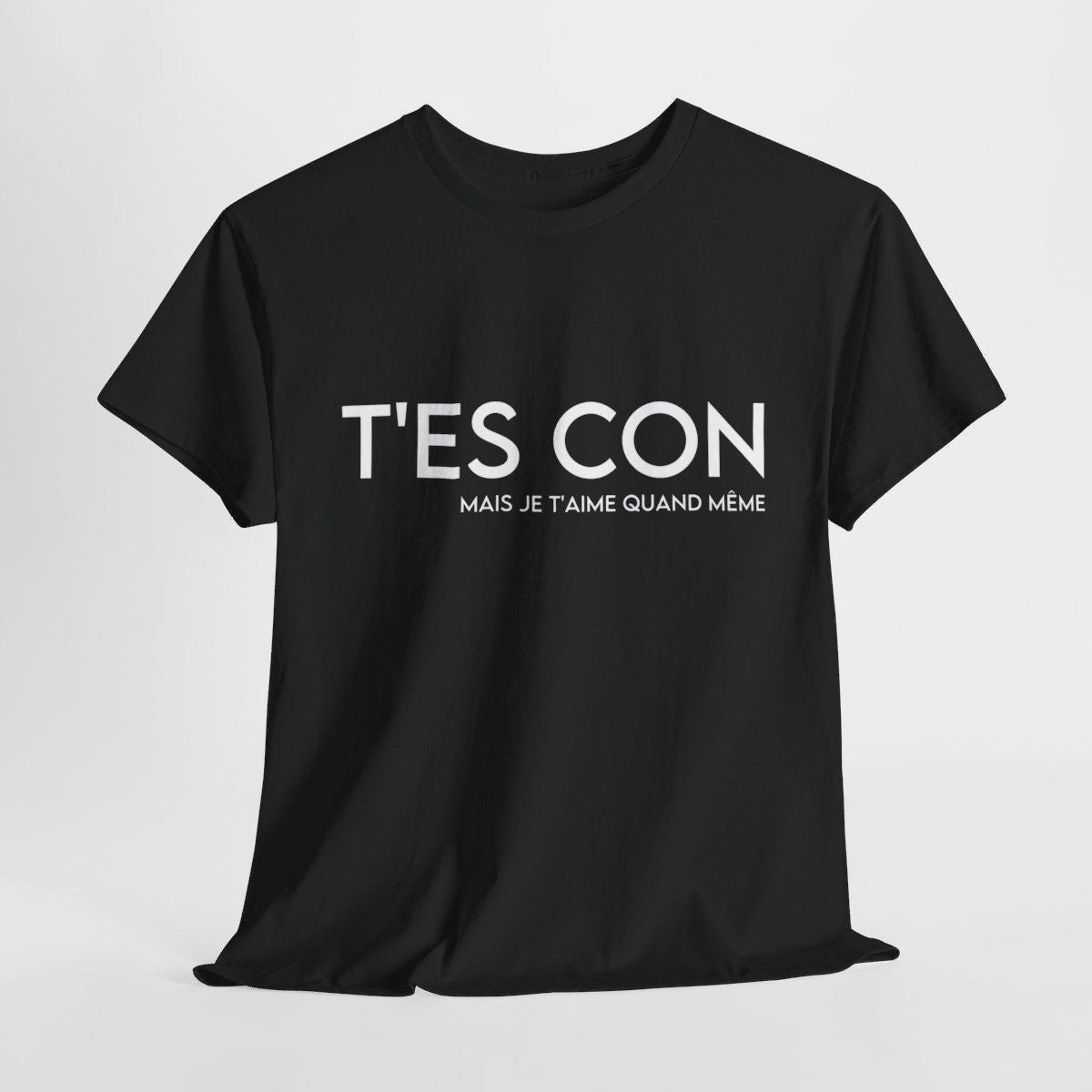 Tee shirt Noir Homme T'es con mais je t'aime quand même idée cadeau humour drôle amusant amour