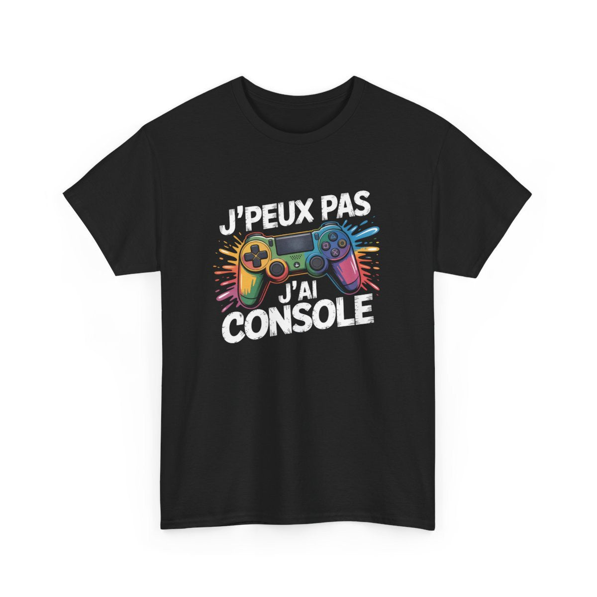 Tee-Shirt Noir J’Peux Pas J’Ai Console – T-shirt Gamer Coton – Manette Arc-en-Ciel – Humour Geek Jeux Vidéo Adulte Ado