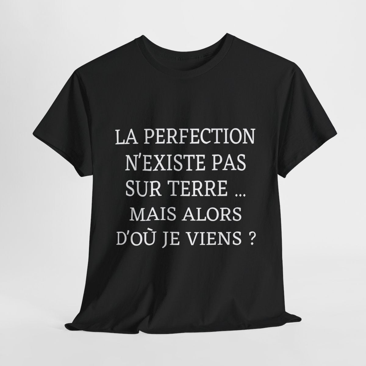 Tee shirt Noir  Unisex La perfection n'existe pas sur terre idée cadeau humour drôle amusant Homme/Femme