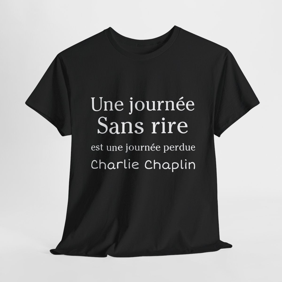 Tee shirt Noir unisex Une journée sans rire est une journée perdue Charlie Chaplin idée cadeau citation Homme/Femme