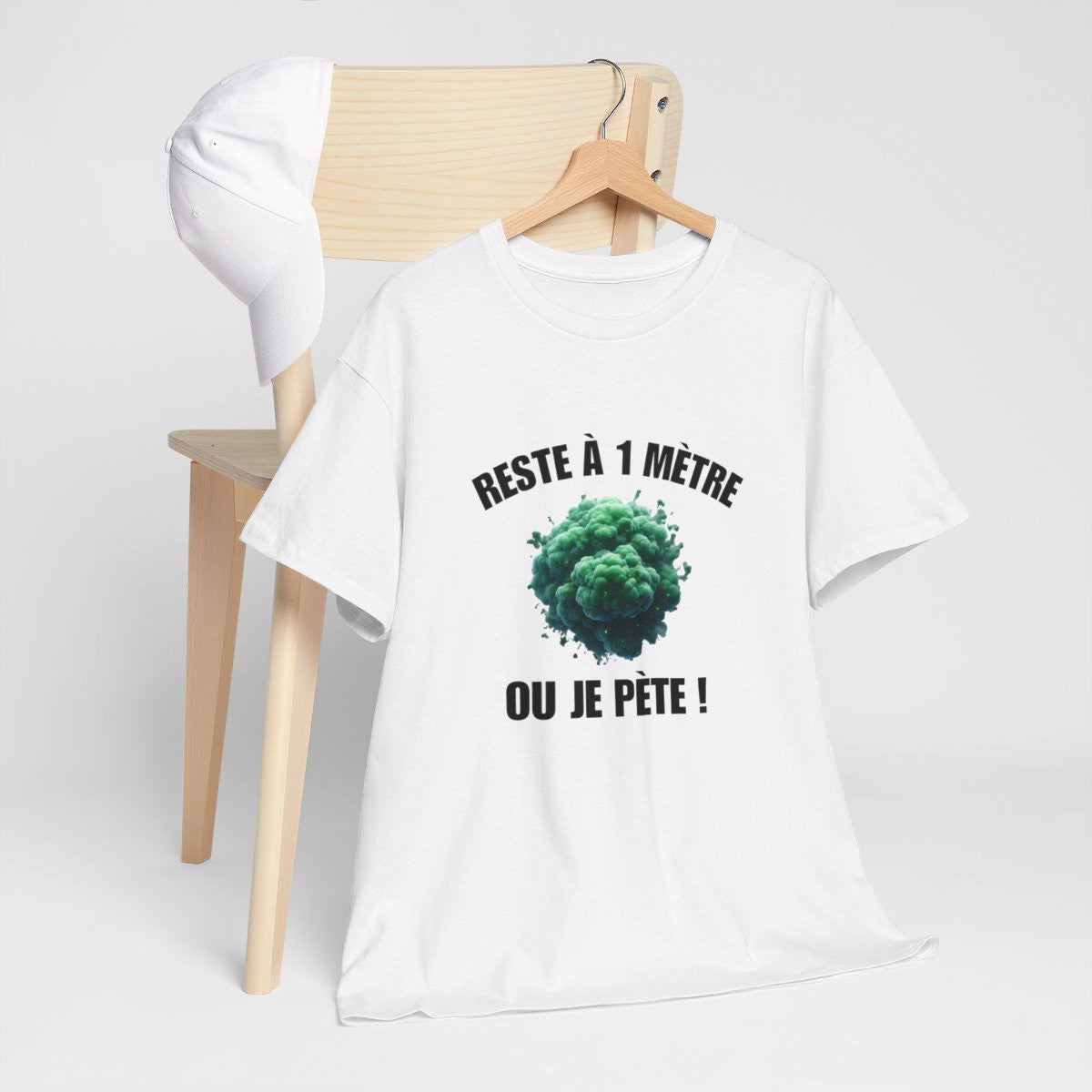 Tee-Shirt Reste à un Mètre ou Je Pète idée cadeau humour drôle amusant pour Homme ou Femme