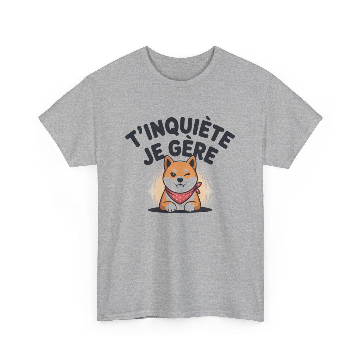 Tee-Shirt T’inquiète Je Gère – T-shirt Chien Mignon Blanc ou Gris – Humour Coton Unisexe – Cadeau Fun et Positif