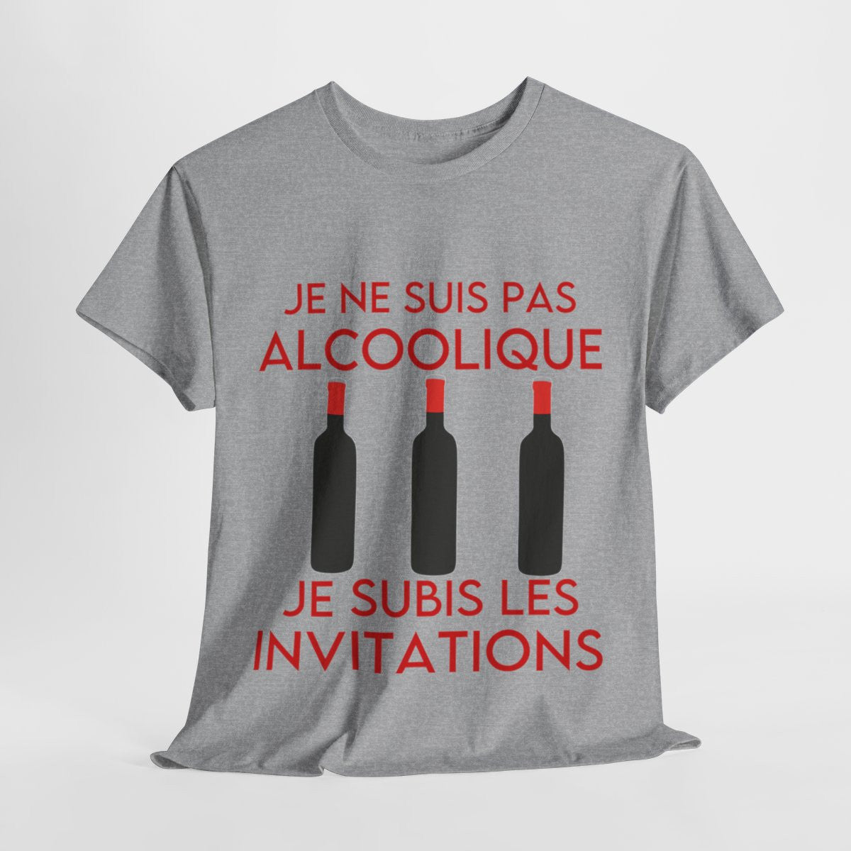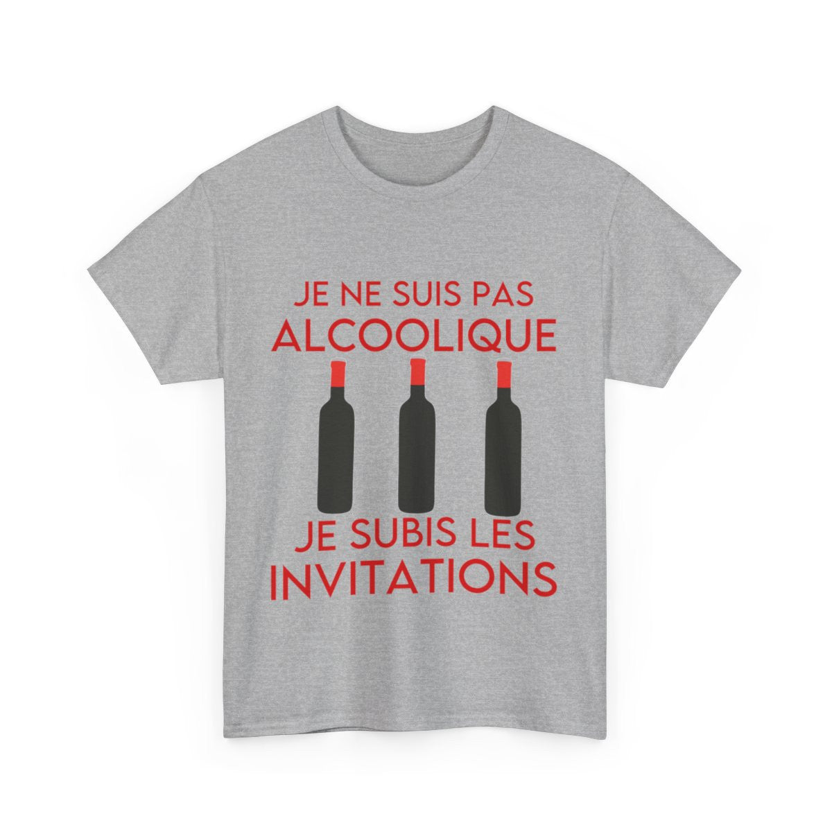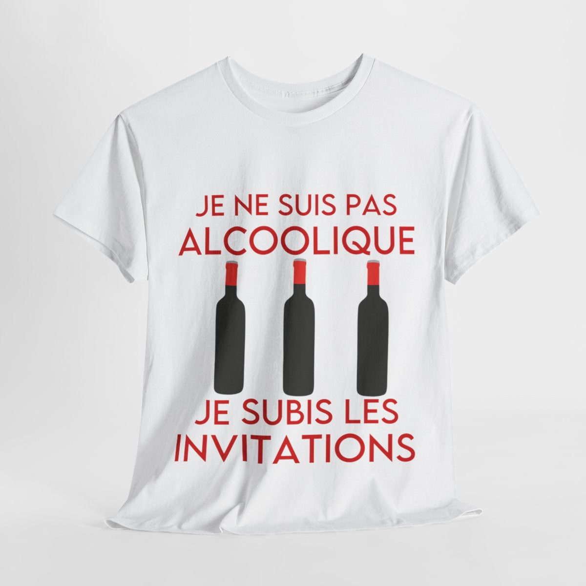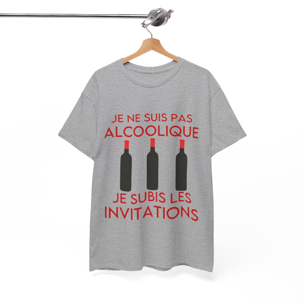 Tee shirt Unisex Je ne suis pas alcoolique je subis les invitations vin rouge idée cadeau humour drôle amusant Homme/Femme