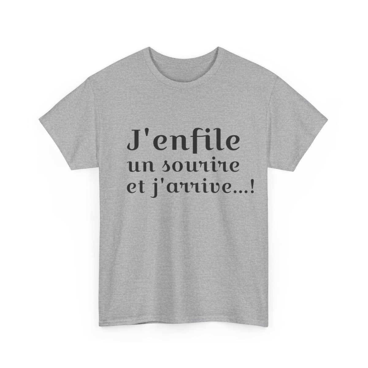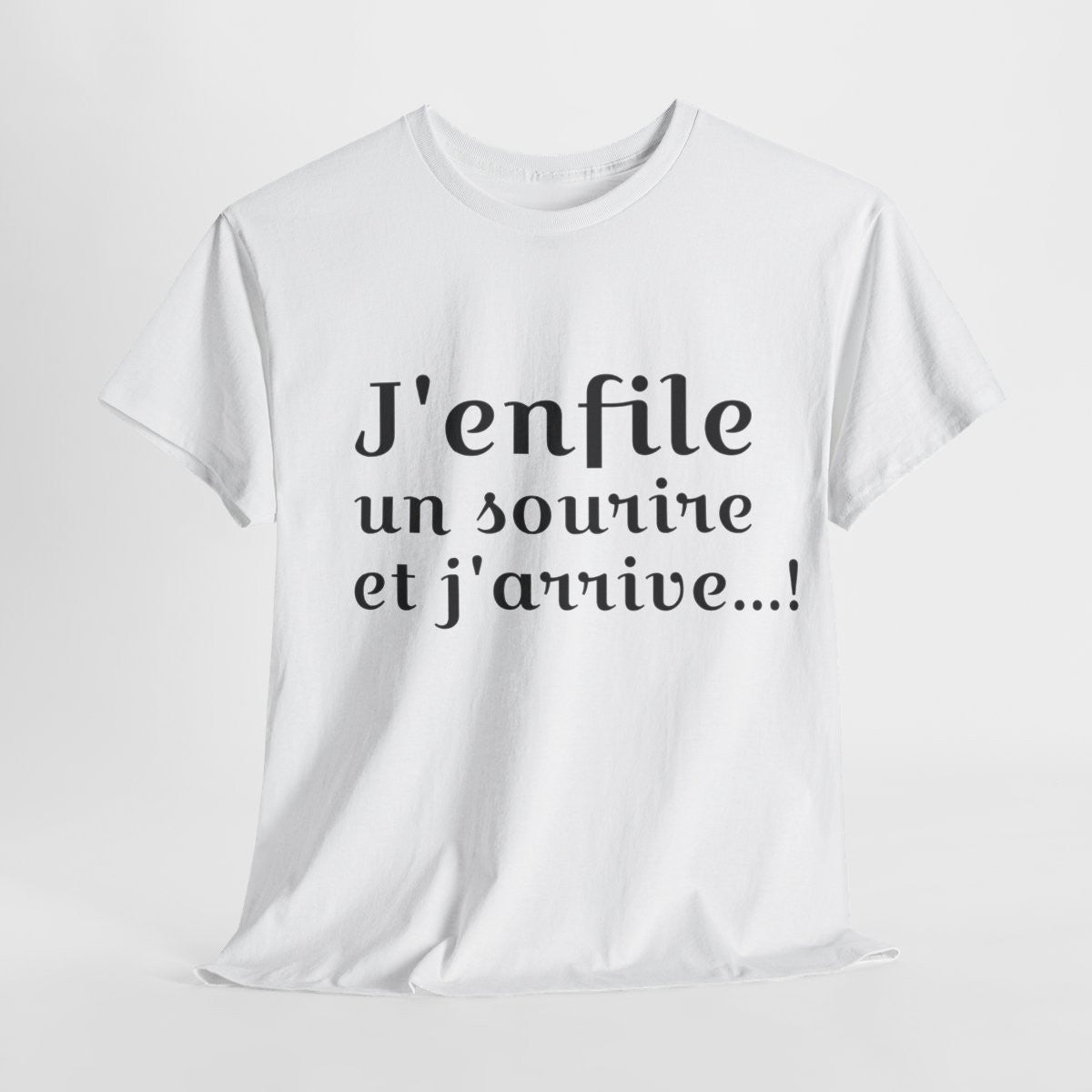 Tee shirt Unisex J'enfile un sourire et j'arrive, idée cadeau humour drôle amusant Homme/Femme